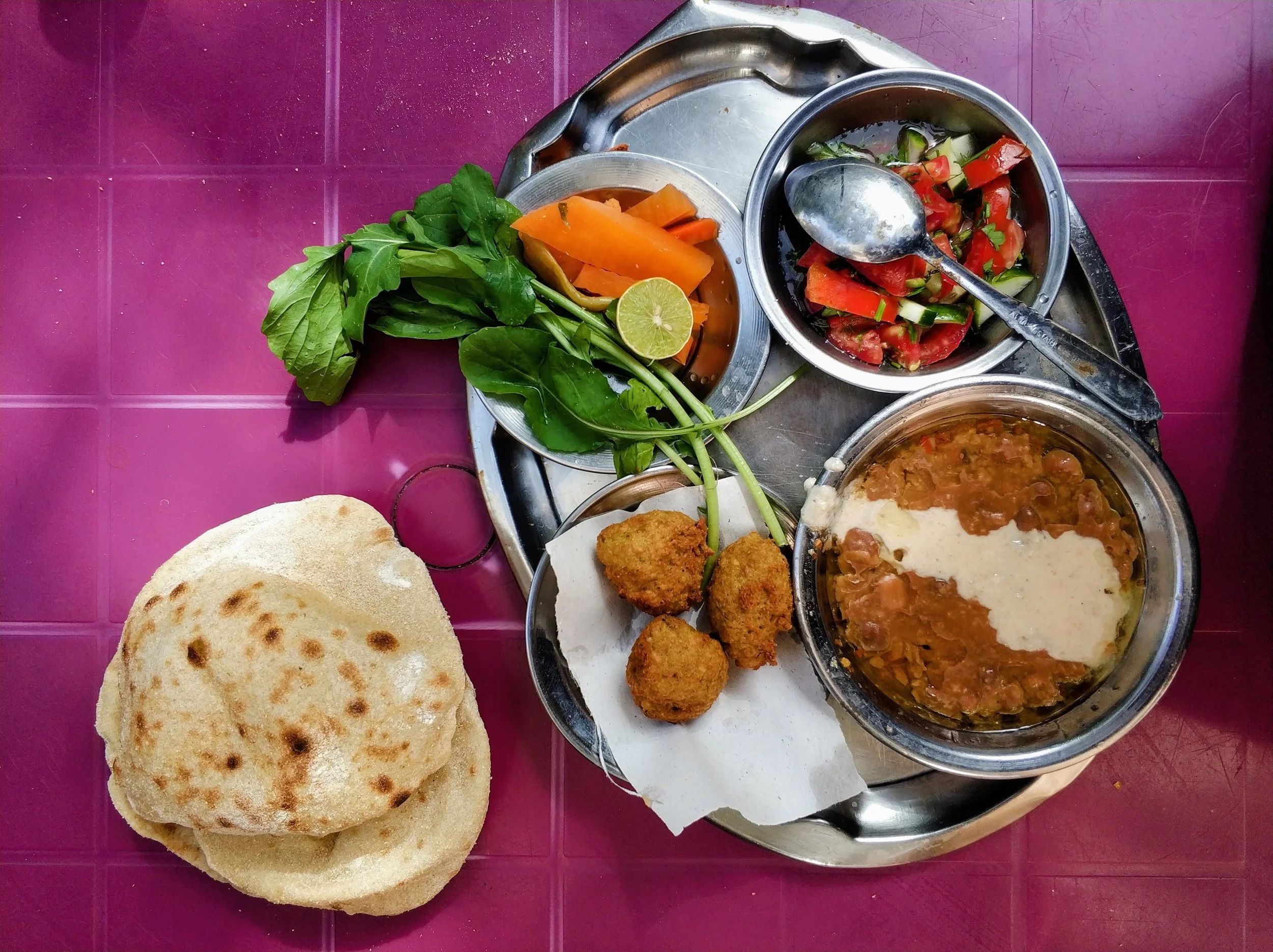 Total cost for a 1/4 kg combo with salad, bread and tahini: E£80, or €1.57
