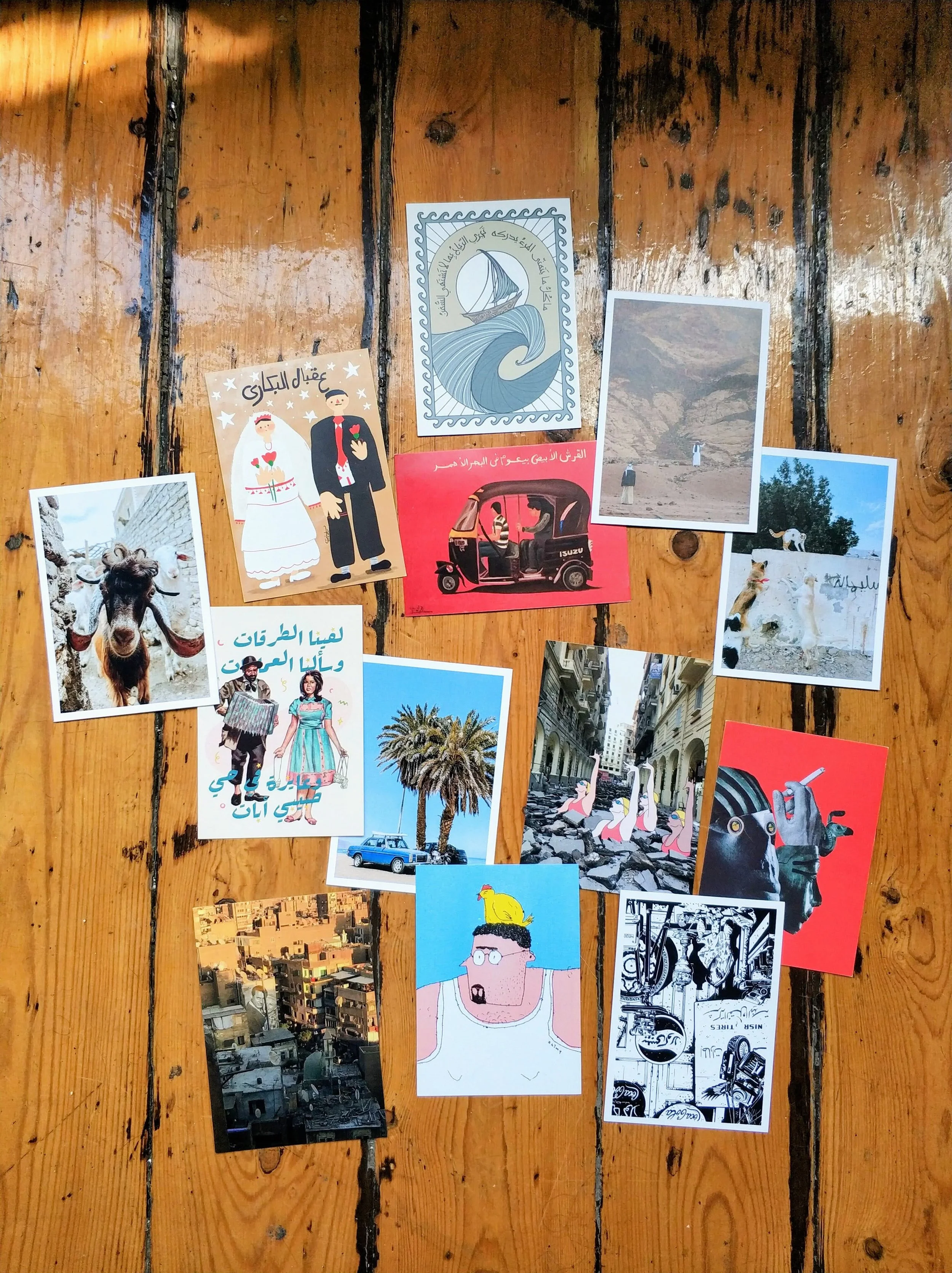 Anyway, in lieu of photos from this morning’s (or tonight's) walkabout, where the streets of Cairo were literally flowing with blood from all the freshly slaughtered sheep and cows and at least one camel, here's a shot of some postcards that got dropped into a postbox earlier today.